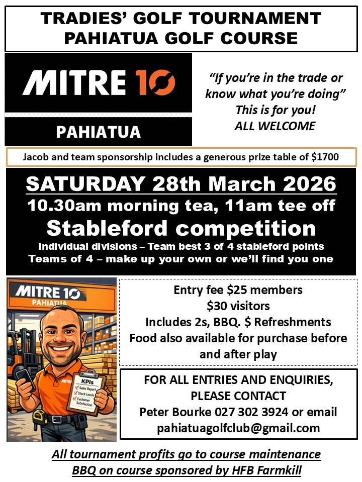 Sponsored by Jacob and the team at Mitre10, Pahiatua